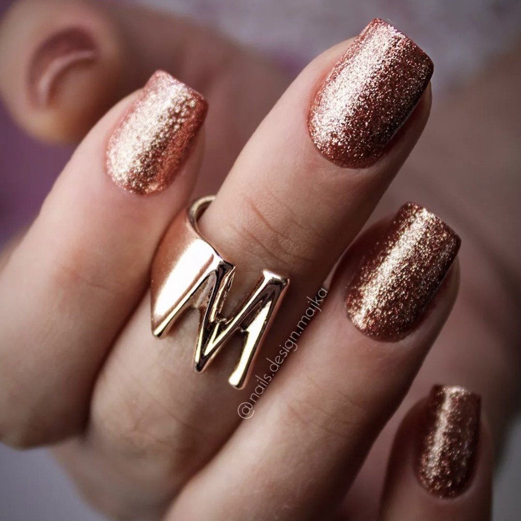 Třpytivý UV gel na nehty s platinovými vločkami v růžovo-zlatém odstínu