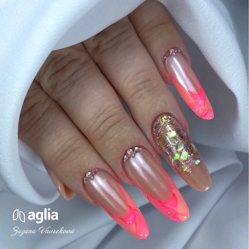 Pigment nejlépe vynikne na světlých odstínech od tělové, růžové, modré, fialové .... Určitě jej pro extravagantnější efekt doporučujeme nanést i na tmavší odstíny. Pigment můžete použít různými způsoby.