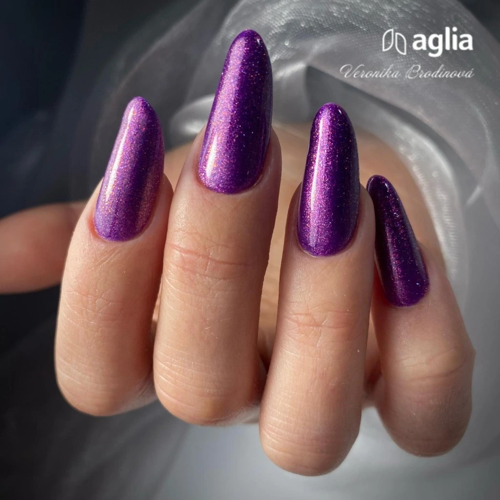Fialový glitrový UV gel na nehty.