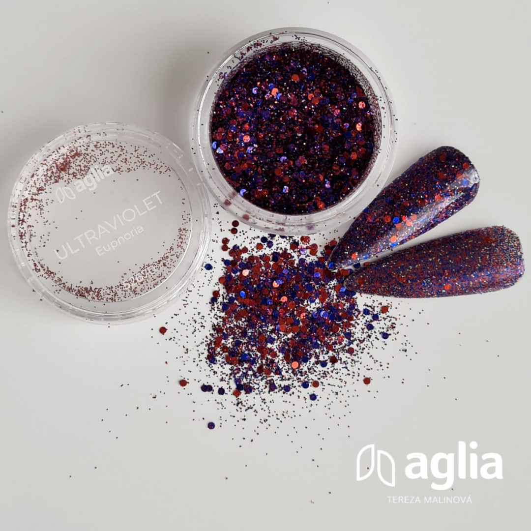 Třpytky z kolekce Euphoria obsahují mix různých velikostí a tvarů, což zaručí okouzlující efekt a nádherné odlesky. Jsou vhodné na aplikaci do výpotku barevného gelu nebo pod čirý gel.