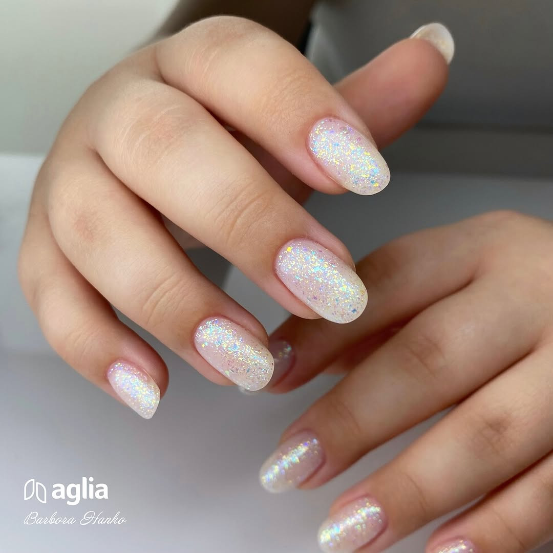 TIP: Pokud chcete dosáhnout dokonalého třpytivého efektu, naneste (natřete) na zmatněný a očištěný nehet ještě jednou velmi tenkou vrstvu BUILDER GALAXY gelu a třpytky se mnohem více rozzáří.